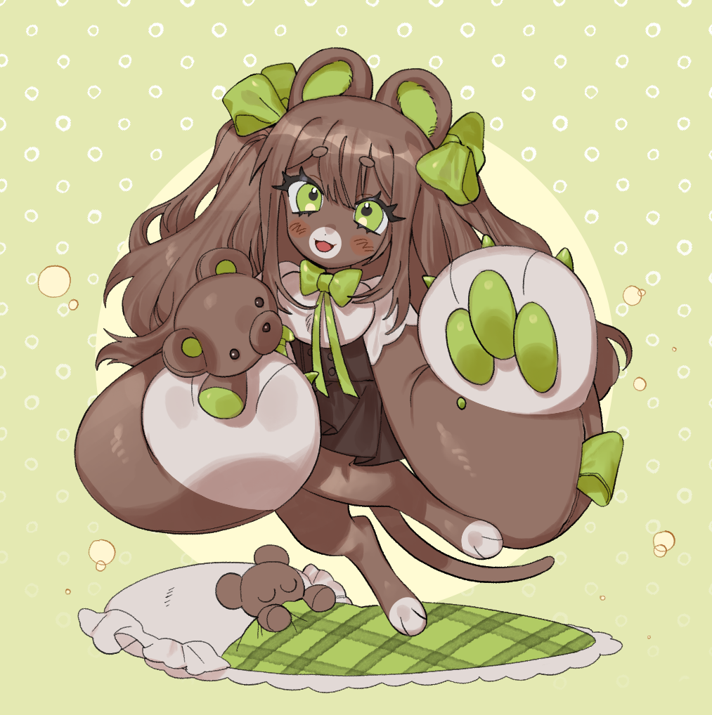 곰인형을 먹고자란 테일스,포옹을 좋아하고 순둥순둥한 성격으로 매우 무해하다. 함께 소꿉놀이나 인형놀이 하는걸 즐긴다. 몸 전체가 솜인형처럼 푹신푹신하며 부드럽다. 곁에 있으면 어릴적 친구를 만난것 같은 안정감을 준다.