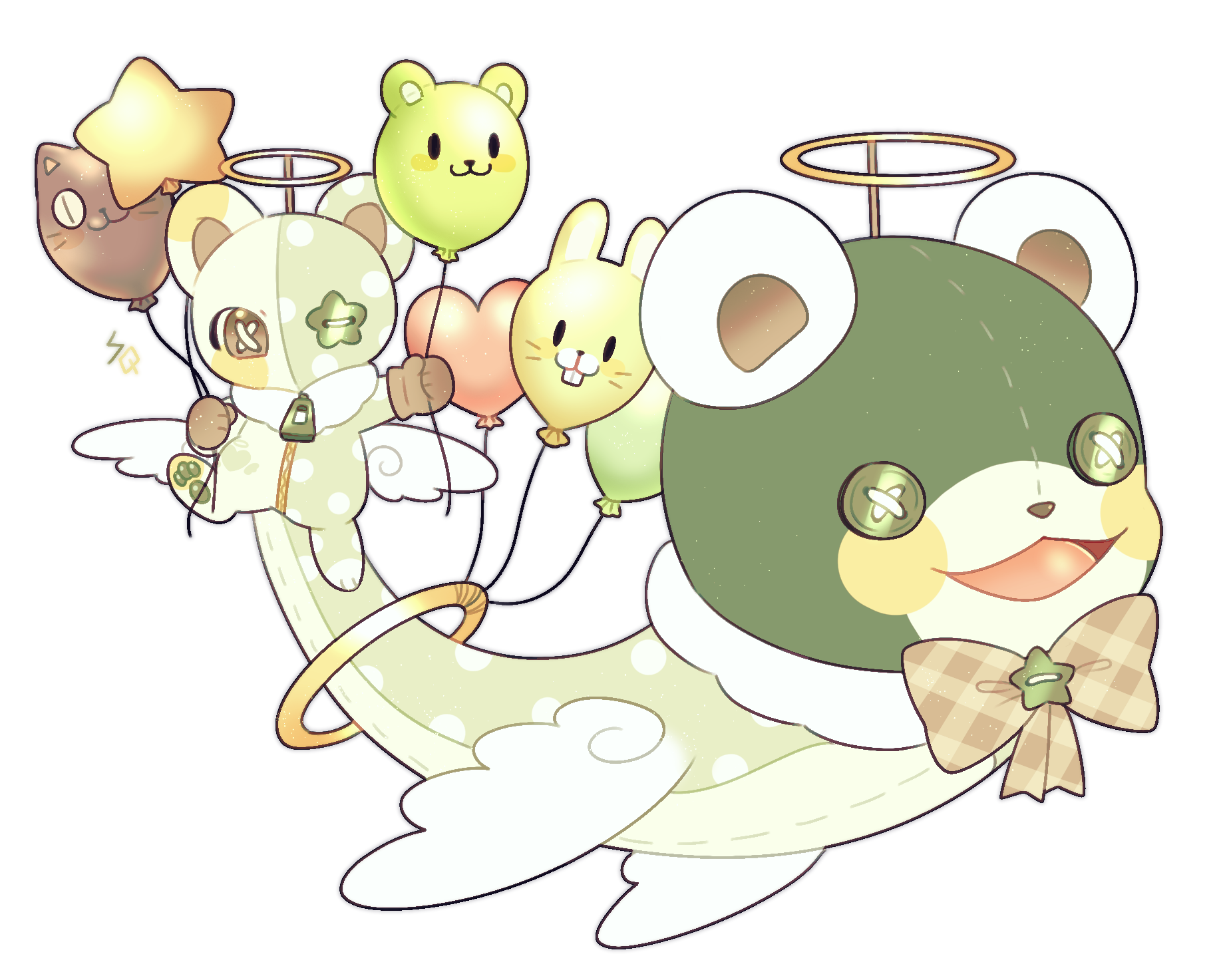 인형탈을 먹고 자란 테일스,본체의 모습은 인형탈 뒤에 가려져 좀처럼 보기 어렵다. 알록달록 풍선을 어린 아이들이나 다른 테일스들에게 나누어 주는 행위를 좋아한다. 인형탈의 종류는 매번 바뀌지만(ex.곰,토끼,고양이…) 녹색 단추눈을 달고있다. 온몸은 인형처럼 푹신푹신 하지만 인형인것은 아니다. 몸에 있는 지퍼를 열면 무엇이 있는지 아무도 모른다.