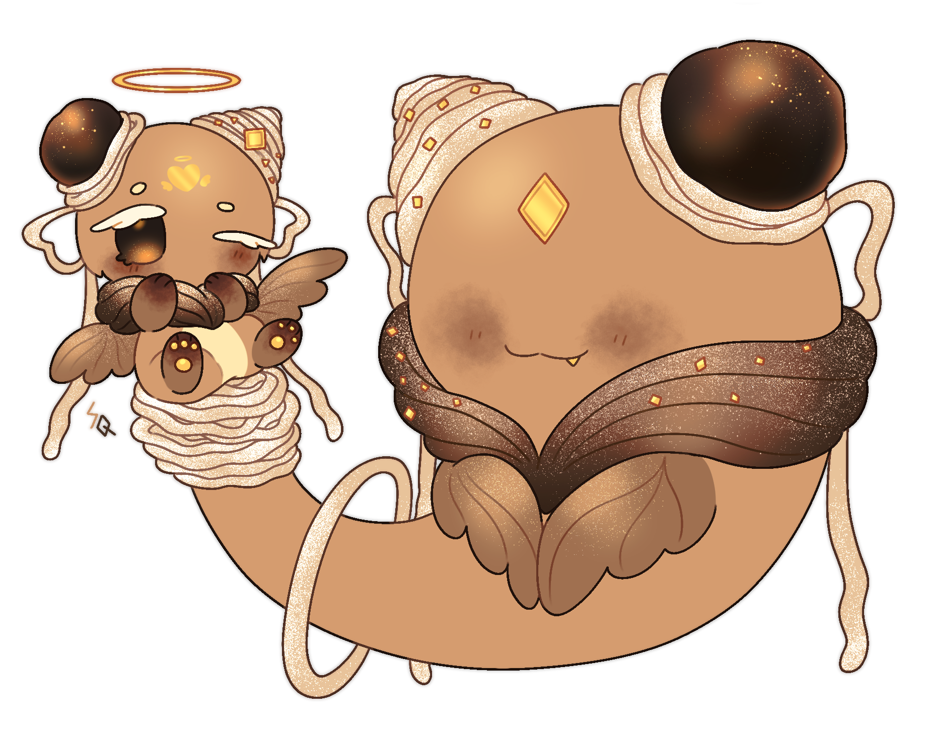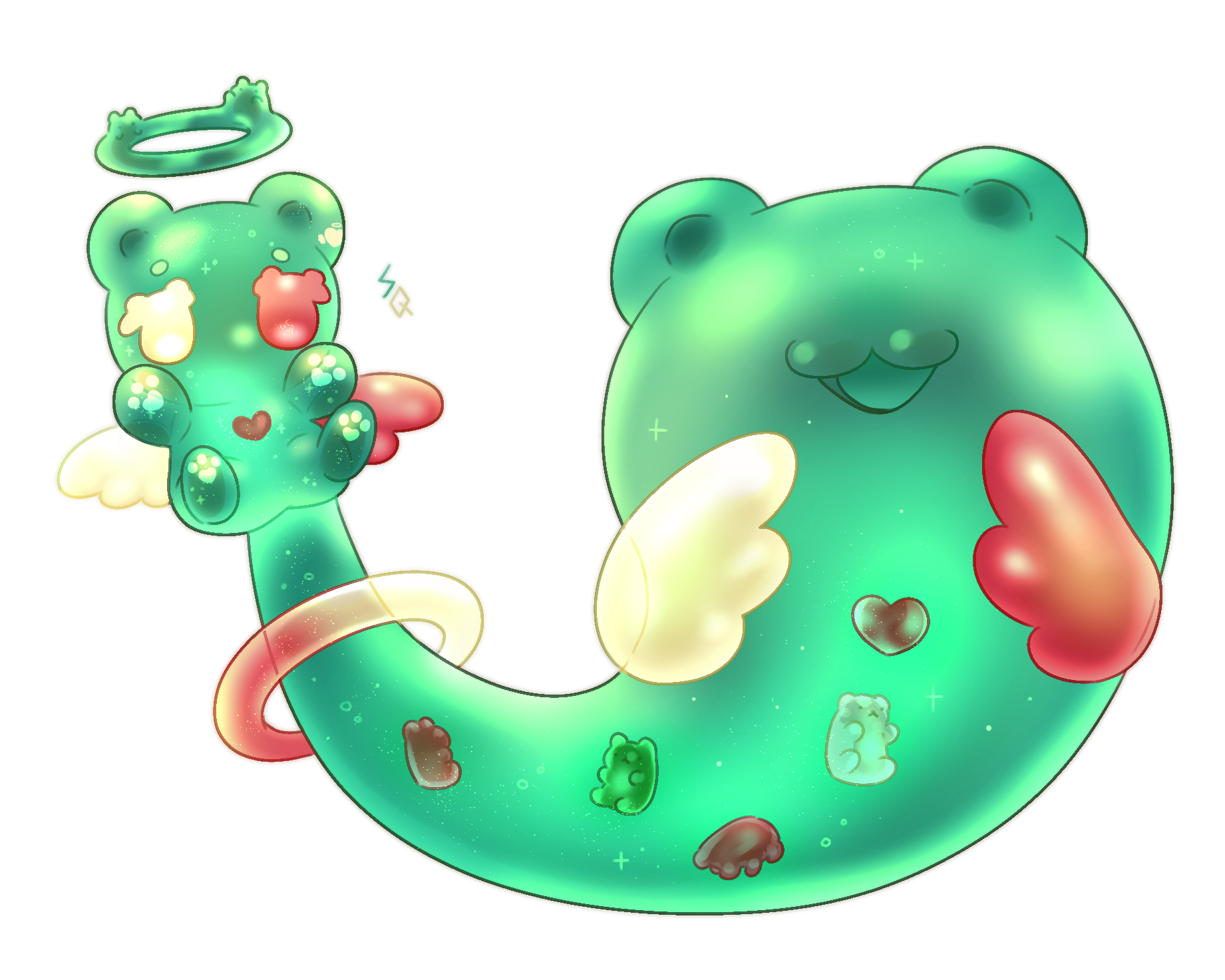 작은 크리쳐가 큰 크리쳐의 펫처럼 붙어있는 모습을 좋아해요. 그렇다면 작은 크리쳐에게 더 작은 크리쳐가 붙어있으면 어떨까! 하는 생각에서 탄생한 콩알 용용이들이에요. 그림그릴때, 공부