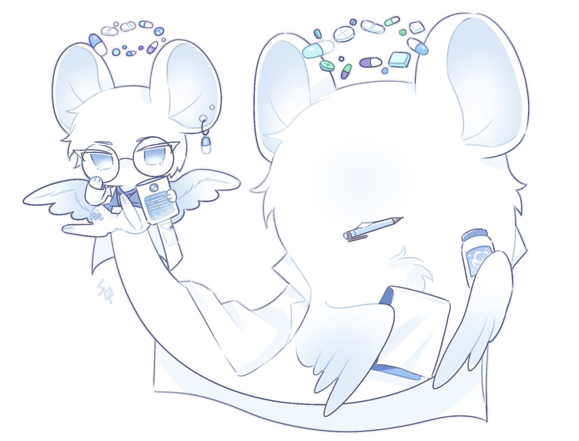 약봉투를 먹고 자란 테일스, 매우 꼼꼼하고 지적이며 똑똑하다. 이해력과 암기력이 매우 좋으며 한번 배운것만으로도 새로운 사실들을 알아낸다. 머리위 헤일로의 형태로 떠다니는 약들은 직접 제조한 약이며 각기 다른 효과를 낸다. 약이 필요한 대상에게 헤일로의 약을 하나씩 꺼내 나눠준다. 꼼꼼하게 누가 언제 약을 가져갔는지 기록하는 듯 하다.